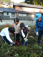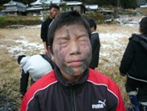 センターがある地域では、毎年1月14日が「とんど焼き」の日。 お昼ごはんをたべていると「2時くらいから始めるから、おいでや~」 と地域の方からの電話。 とんどの火が高く舞い上がり始めると、学園生たちが実家で書いて持ってきていた書初めを投入。 「書初めが空高く舞い上がると書が上手くなる」という言い伝えから、皆一生懸命、高く舞いそうな位置に自分の書初めをくべてみていました。 お正月飾りが燃え尽きると、残った炭を、大人たちが子どもたちのおでこにすりつけました。 「今年一年風邪をひきませんように」 あれれ?いつのまにやら、こんな顔に・・・ こんな顔にも・・・ りんごのほっぺ。 全員真っ黒けの顔で、雪合戦をしながら、にぎやかにセンターまで帰りました。 帰り際、地域の方がとんどで焼いた鏡餅を下さいました。 この地域の風習に従って、翌朝、「小豆粥」にして皆でいただきました。