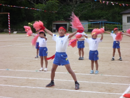 お腹一杯になった後は、子ども達が自分達で考えた応援合戦です!赤白ともに、アイディア満載で見ていて顔がほころんでしまう応援合戦でした。