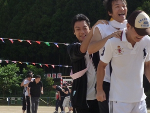 地域の大イベント、運動会♪ 小学校、幼稚園だけでなく、老人クラブ、婦人会、消防団といった各世代の人たちが集って、盛り上がります。 ←指導員も、地元の若者と一緒に熱がこもります・・・ 山村留学生の保護者の皆さん方も、受入農家さんと手分けしながら夜明け前からお弁当を作り、我が子のためにと集まってきました。 一族大集合。 受入農家さんを交えて、お母さん手作りのお弁当を囲んでいます。 いいですね~。 ←僕のお父さんは、深夜まで続いた仕事から直行。 ほとんど寝ていないんではないでしょうか。 お父さんお母さんや兄弟たちに見守られ、留学生たちは張り切って競技にのぞみました。 親も子も出番が多く、アットホームな、小規模校ならではの運動会。 都会出身の留学生親子には、とても思い出に残る行事です。