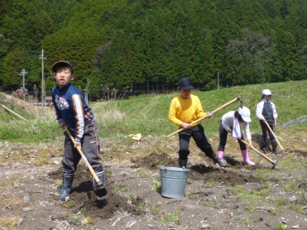 午後からは、畑に移動し、雑草抜きから畑起こしまでを行いました。朝から農作業に精を出した学園生達ですが、夕暮れまで渓流探検をしたり元気に遊んでいました。