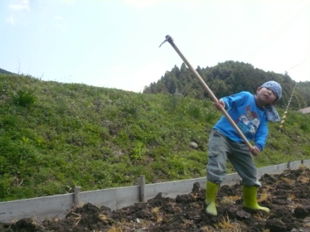 硬い布団で寝るより、ふかふかの柔らかい布団で寝た方が気持ちいいように、稲もふかふかに耕した土に植えた方が美味しく育つぞー!なんて言われたもんだから、自分の背丈と同じくらいの鍬をせっせと持ち上げていました。