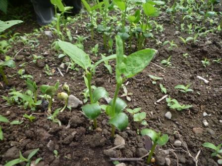 大豆は、今月の初めに、畑に直蒔き(筋蒔き)しておきました。種類は、白大豆、黒大豆、青大豆です。そして、枝豆として収穫する黒枝豆も。