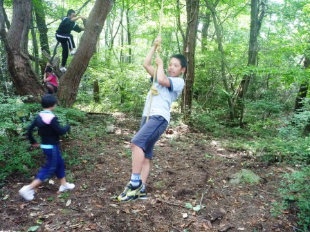 三瓶こだま学園に到着し、お互いに自己紹介をするところまでは緊張した様子でしたが、一緒にサッカーや裏山で遊びはじめるとすっかり仲良くなっていました。
