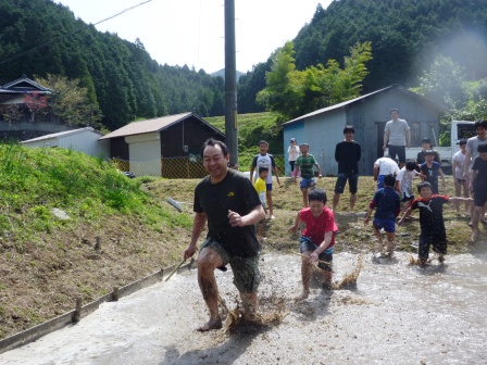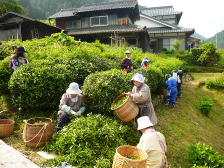 神河独自の活動のひとつに、お茶摘みがあります。5月下旬頃になると、家族総出でお茶摘みをされてる姿をよく見かけます。学園生たちも、地域のおばぁちゃんに講師として来ていただき、お茶摘みをおこないました。