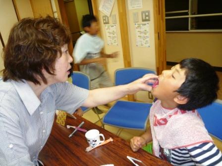 6月7日、町内の歯科衛生士さんが学園生の歯磨き講習のためにセンターまで来てくださいました。
