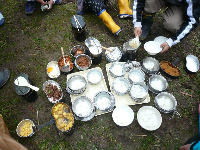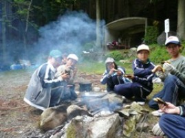 6/7(土)~8(日) 千ヶ峰~笠形山縦走&キャンプ!! ~目標を持って計画を練り上げた、レベル別の活動~ 6月第2週目の活動は、2年目6名、1年目6名に分かれての活動。1ヶ月前からそれぞれで集まり、やりたいこと、目標、行程などを入念に計画してきました。 1年目の子どもたちはキャンプを計画。少人数に分かれて火起こしに挑戦した前回とは違い、「皆で豪華な料理を作る」ことを目標に、チャレンジしました。 隣りの大畑集落から林道を登り、千ヶ峰稜線近くの南山大師堂前の杉林で幕営しました。 夕食メニューは、手打ちうどんとゼリーです。うどんは出発前にセンターで打ってからキャンプ地に向かいました。縦走中で疲れた継続生たちを出迎え、ふるまいました。仲良く、おなかいっぱい食べました。 朝食は手作りパンとホットケーキ。レーズン、チーズなど、思い思いの味付けで焼き上げました。 昼ごはんは、センターに戻り、かまどでご飯を炊きました。味噌汁、サラダを作って、いろりのまわりでいただきました。最後は五右衛門風呂でキャンプの汗と灰を洗い流し、活動終了です。 お母さんが用意してくださったこの日の夕食が、なんとありがたかったことでしょう。 ================================================ 2年目の継続生の活動は、「千ヶ峰‐笠形山縦走キャンプ」。2年目でしかできないハードなことをしよう!と意気込んで立てた計画でした。 1日では無理のある行程なので、途中テント泊をはさんでの山行です。 センター前の石風呂登山口から入山し、千ヶ峰を山頂。夕方、稜線から少し下りたところにある、大畑・南山の「お大師さん」へ。キャンプをしている1年目の子たちと合流しました。翌日は、さらに稜線に沿って南下。 午後6時過ぎ、ようやく笠形山頂上を越えて、下山しました。 「グリーンエコー笠形」の大浴場でゆっくり汗を流して帰ってきました。 キイチゴをむさぼる子どもたち 1年目、2年目のグループはお互いに切磋琢磨しつつも、キャンプ地では互いの活動をねぎらったり、思いやる行動が目立ったのが印象的でした。 センターに帰ってくると、どの子たちも、達成感と自信に満ちた顔をしていました。