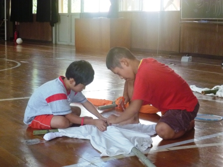 センターに戻り、みんなで片付けを済ませると・・・疲れたのでしょう。本を読んでいる最中に、正座したまま、眠ってしまいました。