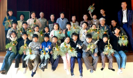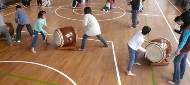 凧作り、太鼓練習など、一日中一緒に遊び、すっかり仲良くなりました。 5日目 大掃除、ハガキ交換、閉村式