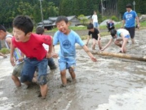 と、最初はおっかなびっくり田んぼにつかっていた親子ですが・・・