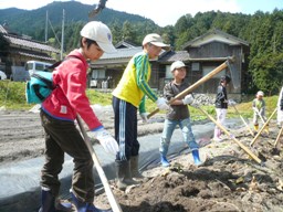 この日は、3人の修園生が大阪や滋賀から遊びに来てくれ、手伝ってくれました。1人はセンターに、2人は里親をしてくれた農家さん宅に、前日からの泊まりです。