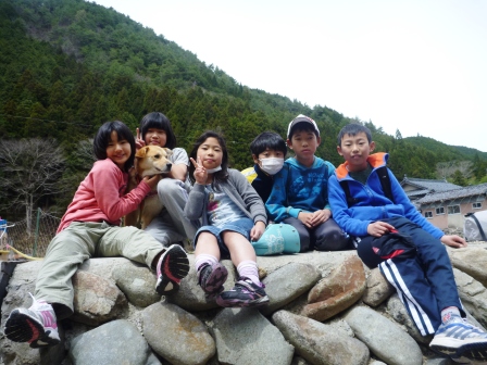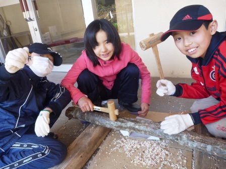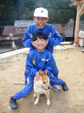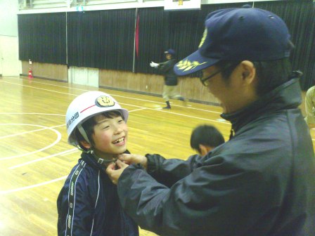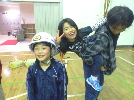 ヘルメットを被らせてもらい、ウォーミングアップまでも一緒にさせてくれました。見学のはずが、お邪魔してしまい、すみません・・・。子どもたちは、団員の方が練習されていた「休め!」の動作が気に入ったようです♪