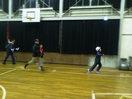 そんな、消防団の方々が来月の消防操法大会に向けて、毎晩、練習をされているのですが、この日は雨のため、センターの体育館を使うことに。