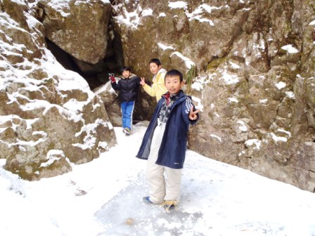 グリーンエコー笠形の施設内から歩くこと30分。そこは、氷の世界そのものでした。子どもたちの「おぉ~!」という歓声のあとは、自然が創り出した芸術品に魅了されっぱなしでした。