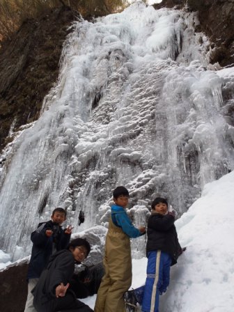 何より感動したのは、落差65メートルの滝全体が凍っていることなんですが、その氷の内側に絶えることなく山水が流れていることでした。足場が凍っていてヒヤヒヤしましたが、みな「来て良かったー♪」と大満足で帰路につきました。お近くの方は、是非、足を運んでみてください♪