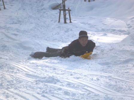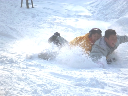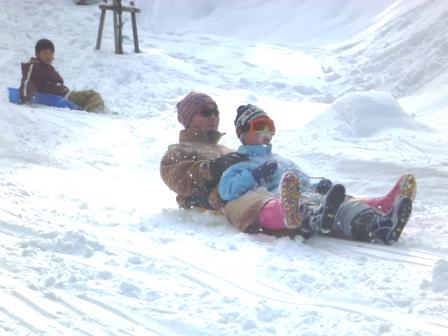 凍った水たまりでスケートしたり、尖ったものやら曲がったもの、植物を巻き込んだつららに興味津々。中には「おいしー!」ボリボリかじる子も♪