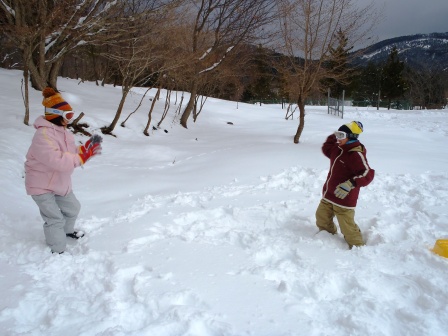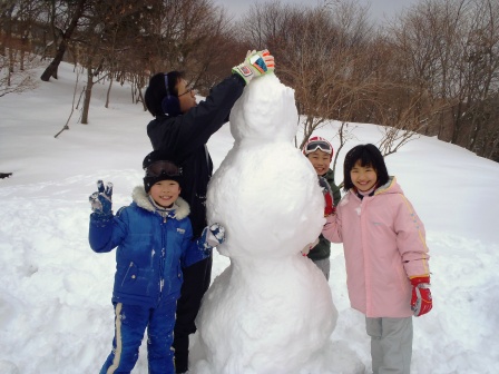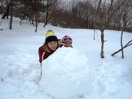 子どもたちは、ただただ雪の上に飛び込んだり、雪だるまを作ったり、ソリ遊びをしたりと寒さに負けず、たくさん遊びました。