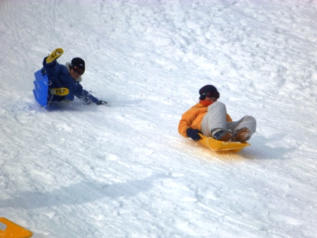 子どもたちが虜になったのは、やはりソリ遊びでした。3人乗りやスーパーマンのように滑ったり、中には正座したまま滑ったりと・・・遊びの幅は広がるばかりでした。