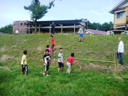 三瓶こだま学園に到着し、お互いに自己紹介をするところまでは緊張した様子でしたが、一緒にサッカーや裏山で遊びはじめるとすっかり仲良くなっていました。