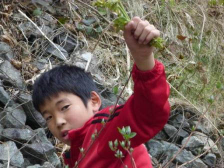 この冬菜は、昨秋に植え、雪が降り積もる中、冬を越し、春にようやく収穫できます。香りは高菜に似ており、ツンとした辛味もあります。今年は、春先になって、ぐんぐんと大きく成長しました。