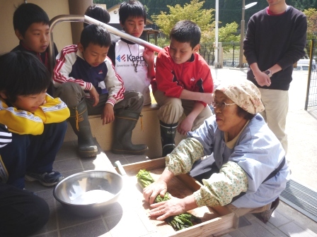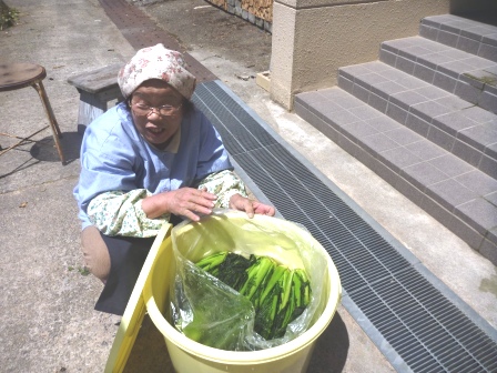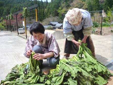 ゴールデンウィークの最終日、センターの近くに住む足立君代さんと足立ますへさんに「冬菜漬け」を教えていただきました。
