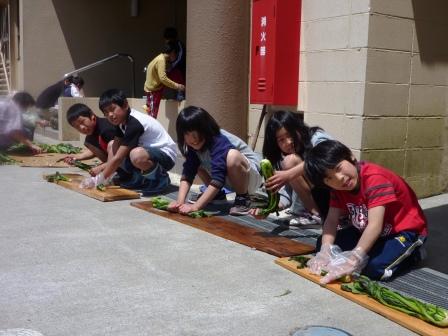 前日に、センターの畑で冬菜を収穫し、干しておきました。