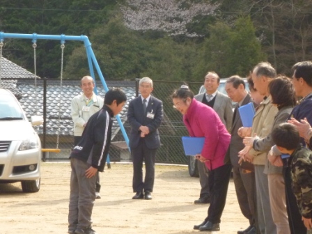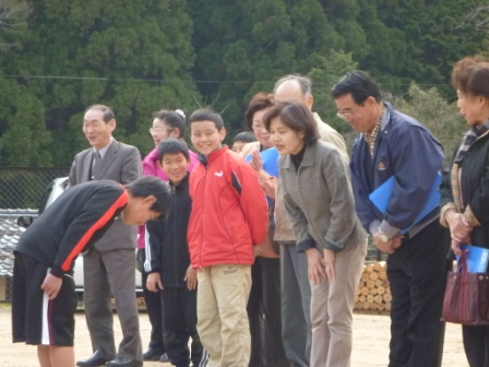 学園生たちは、名前を呼ばれると、これから一年お世話になる農家さんに深深とおじぎをし「お世話になります。どうぞ宜しくお願いします。」と挨拶をしました。農家の方々も「ようきちゃったなぁ。」や「おかえり。」と学園生を笑顔で温かく迎えてくださりました。