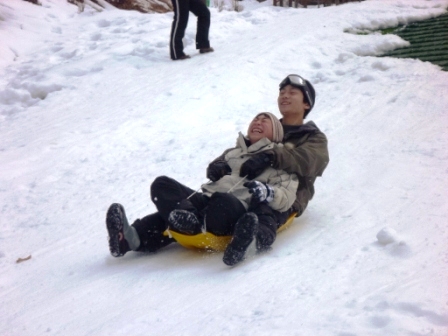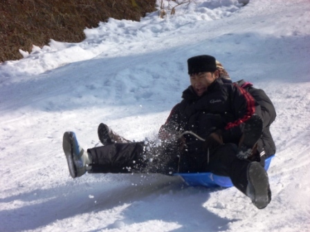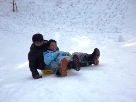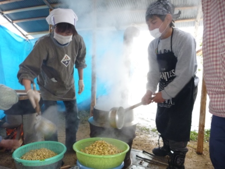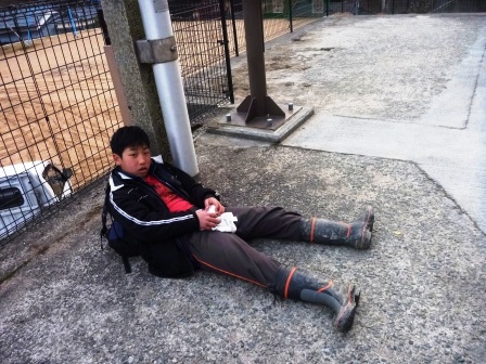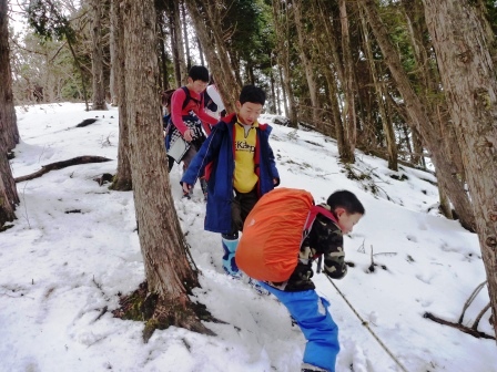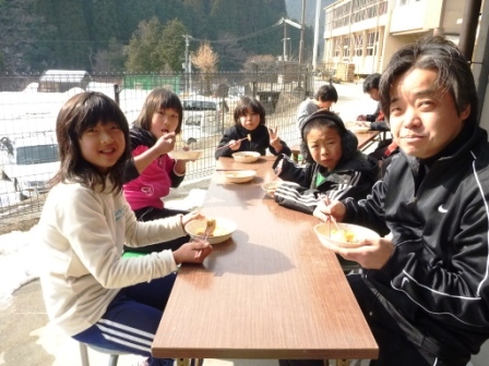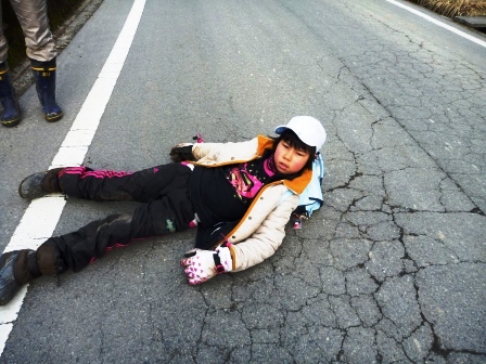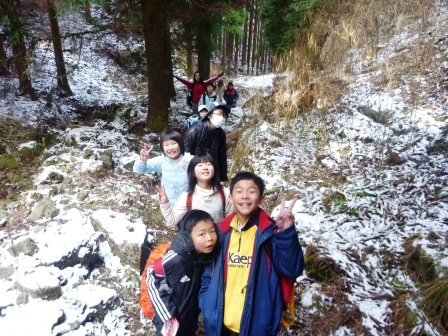 この一年間、センターで過ごした194日間、登下校で歩いた距離は、1358km。学園生の体力、脚力は凄まじい成長をみせました。偏平足がなおり、しっかりと土踏まずができた学園生もいます。そんな学園生が、最後に行ったのは一日で22kmを歩くお別れハイキングでした。 大畑の矢床から南山の大師堂へ向かい、多田坂から千ヶ峰山頂へと登りました。そして、市原峠方面へ下り、マタニ山を経由して、新田地区へ下山し、センターへ帰ってきました。行程22kmの道のりを誰一人欠けることなく踏破することができました。