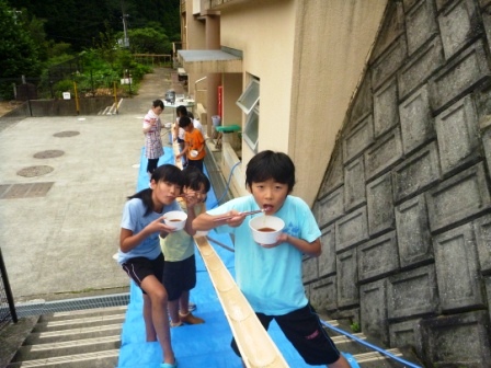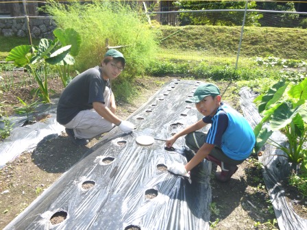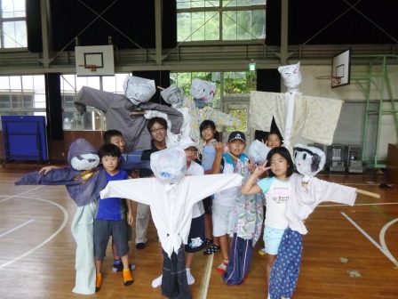 夏休みを終え、元気にセンターに帰ってきた学園生と保護者で、親子活動を行ないました。また、今年は、学園生と保護者が一緒に活動する機会を利用して、地元の方へも参加を呼びかけ、交流会として活動しました。