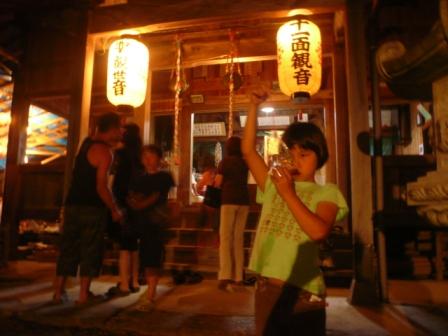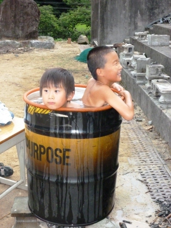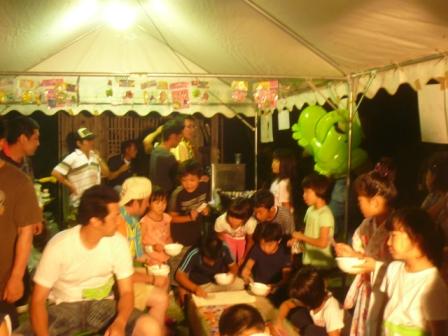 「そっち、ちゃうちゃう!」「もっと右!右!」なんて、声が飛び交うものの誰が挑戦しても割れず・・・いつまでたってもお預け状態。仕舞には目隠し無しで、スイカを割りました(笑)