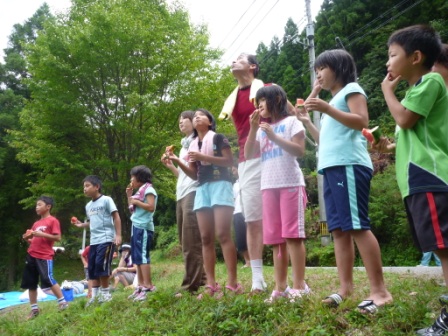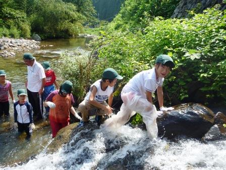 生憎の曇り空でしたが、大人も子どもも越知川の虜になったように遊びました。