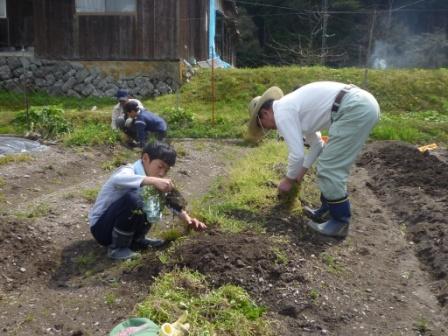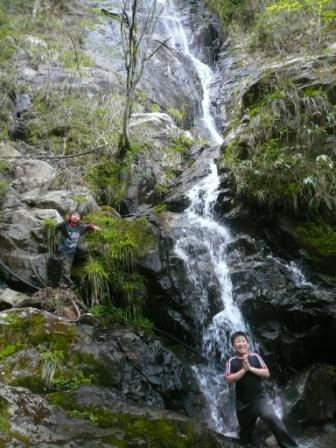 午後からは、新田地区にある不動の滝を見に行きました。晴天が続いていることもあり、水量は少なめでしたが、落差40mの雌滝と53mの雄滝を見ることができ、大満足。「岩の上は、滑るからねー」なんて注意した矢先に、こちらがスッテンコロリン…。大爆笑を生んだ瞬間でした。んー油断禁物。まぁこれも見本だ!なんて言いながら、濡れ鼠となって帰りました。