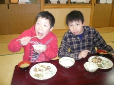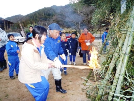 作畑区第5隣保のとんど焼きは、昨年からやまびこ学園のグランドで行っています。子どもたちの下校時刻を待って、火付けをして下さいました。 年末におばあちゃん方に習って作ったお正月飾りや、書初めを燃やしました。 今年1年、風邪を引かず元気に過ごせますように。 5隣保の皆さんと集合写真。 火にくべた鏡餅は、翌朝、小豆粥にしていただきました。 夜はきつねがえり。神河町では作畑特有の神事です。 集落の上から下まで、爆竹を鳴らし、唄を唄いながら列になって歩き、神主さんに祝詞を唱えてもらいます。 親 ワリャナニソウロウ♪ 子 ワカミヤノマツリトテキツネガエリソウロウ 親 モウヒトコエショモウショウ 子 ゴジョナリソウロウ 親 モウヒトコエカリモウソウ 子 ワイワイワーイ♪ 大人も子どもも、神事の後のお楽しみ。