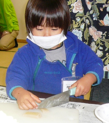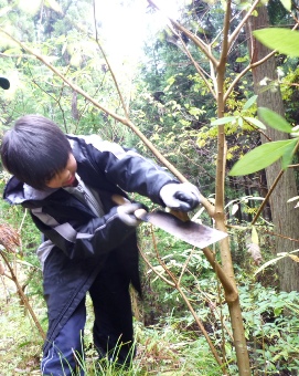 竹を切ってきて箸作り。