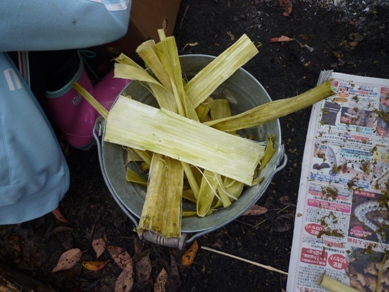 班ごとに工夫してかまど作り、火起こしをしました。