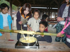 ご飯は、おくどさん(かまど)、お風呂は五右衛門風呂です。