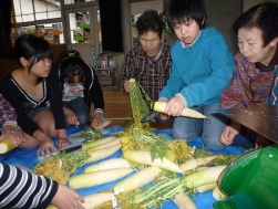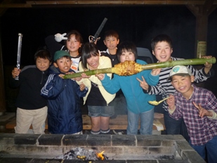 午後は、囲炉裏でパンを焼いたり、畑で野菜を採ってきて、自炊をしたり。