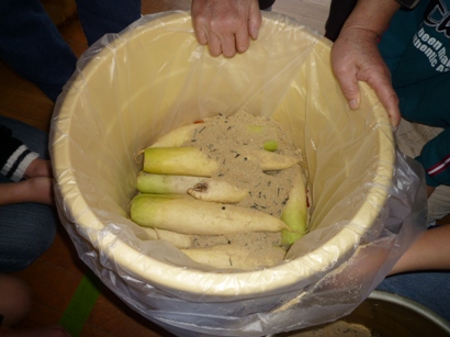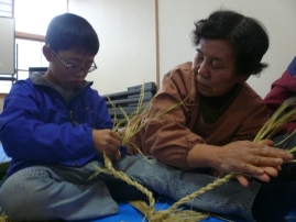 藁をなうのは、とっても難しい。おばあちゃんたちは一瞬のうちになって行きます。まるで神業です。