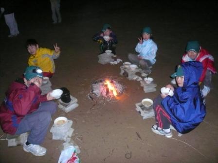 最後の夜は、外で飯盒炊爨(はんごうすいさん)。