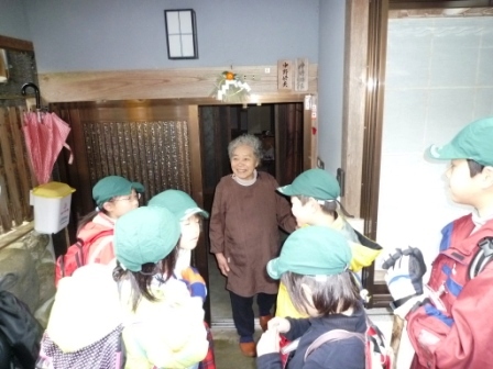 トイレをお借りした女の子たちは、古いかまどや昔ながらの部屋の中を見せていただいたそうです。築100年以上の家に、子どもたちは興味津々。