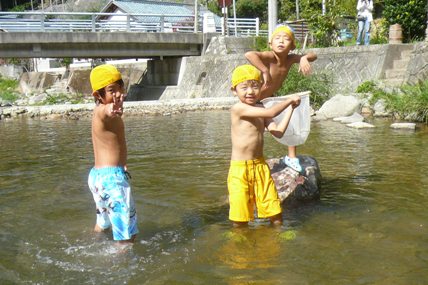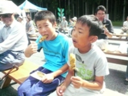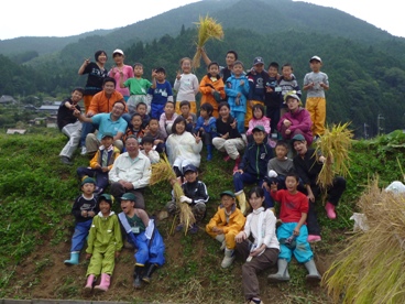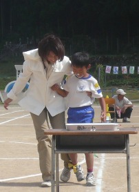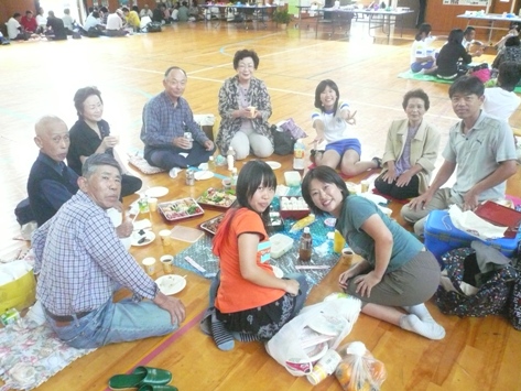 地域の大イベント、運動会♪ 小学校、幼稚園だけでなく、老人クラブ、婦人会、消防団といった各世代の人たちが集って、盛り上がります。 ←指導員も、地元の若者と一緒に熱がこもります・・・ 山村留学生の保護者の皆さん方も、受入農家さんと手分けしながら夜明け前からお弁当を作り、我が子のためにと集まってきました。 一族大集合。 受入農家さんを交えて、お母さん手作りのお弁当を囲んでいます。 いいですね~。 ←僕のお父さんは、深夜まで続いた仕事から直行。 ほとんど寝ていないんではないでしょうか。 お父さんお母さんや兄弟たちに見守られ、留学生たちは張り切って競技にのぞみました。 親も子も出番が多く、アットホームな、小規模校ならではの運動会。 都会出身の留学生親子には、とても思い出に残る行事です。