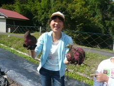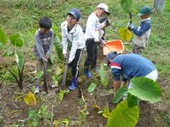 サツマイモとサトイモを収穫しました。