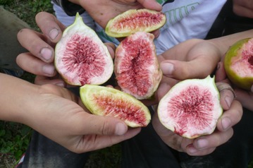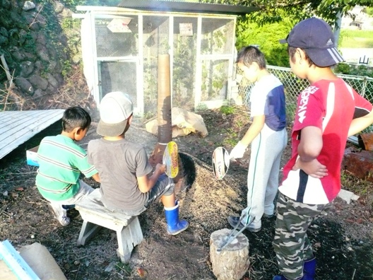 8月の集中豪雨で川が溢れ、一時は”プール”と化した畑も含め、今年もおかげさまで無事に収穫することができました。イモは強い・・・ さっそく焼き芋にしたり・・・ 火の扱いには慣れている子どもたち。そばにバケツを用意して、交代で火の番をしていました。 こちらは、畑で食べた今日のおやつ。 近所のお庭で鈴生りに生っているイチジクのおすそ分けをいただきました。子どもたちが大好きな果物のひとつです。 干し芋も作っています。 今年の干し芋はおいしくできるかな。 期待が膨らみます。 11月7日の収穫祭では、作物の試食会も行います。ぜひ味わってみて下さい。