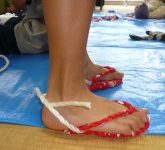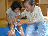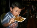 この日の夕食は、玄関前の階段を利用して、そうめん流しをしました。