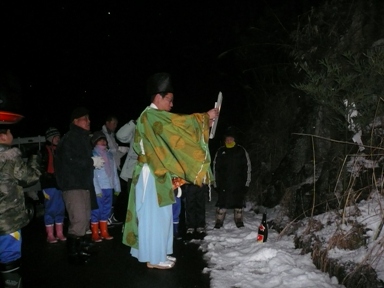 コマができると、ミツマタの皮をはいでムチを作ります。