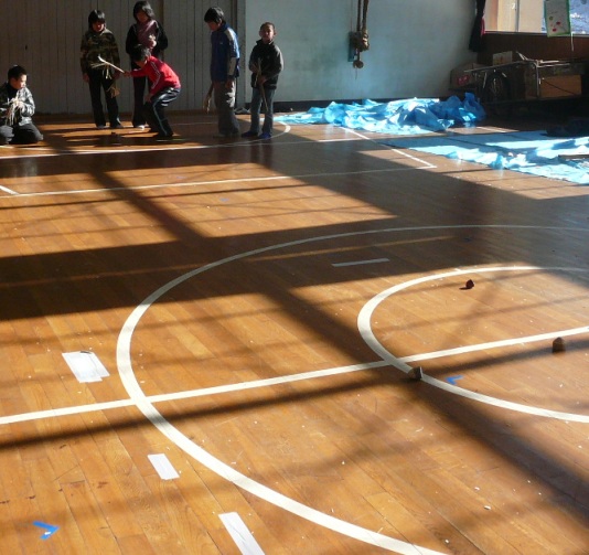 最後は、指導員も混じって2チームに分かれ、カーリングのようなルールで点数を競い合い、たいへん盛り上がりました。
