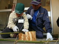 3/27~31 春休み短期山村留学実施しました 年度の変わり目ということで、参加者10名での活動となりましたが、今回も盛りだくさんの5日間となりました。 1日目(3/27木) 1km歩いてセンターへ 竹の切り出しと竹のはし作り おやつは、昔なつかし、「かきもち」。 地域の方がおもちをついて、作って下さったものです。 みんなで焼いて、いただきました。 2日目(3/28金) 午前:いろり農家訪問 お弁当を持って、山菜・野草つみ &「不動の滝」ハイキング 午後:いろりで自炊活動 ・かまどでご飯炊き ・五右衛門風呂焚き ・豆腐づくり ・つくし料理、山菜のてんぷら ・いろりを囲んで、夕食 3日目(3/29土) 午前:竹細工(講師は、地元の老人クラブの皆さん) 午後:リヤカーに荷物をつんで、キャンプに出発 テントたて、火起こし、飯盒炊爨・・・時間はかかっても、全て子どもたちの力で行います。 4日目(3/30日) 午前:キャンプかたづけ、入浴 午後:しいたけ植菌、しいたけ収穫と試食 夜:お別れ会 ちなみに、この日のおやつは・・・ ←その1 つくしのかりんとう ↓その2 焼きしいたけ どちらも、子どもが自分たちで採ってきたばかりの、素朴な味。 競い合うように食べていました。 5日目(3/31月) 午前:荷作り、大掃除 午後:ハガキ交換、お別れ 最終日には、ほぼ全員が「また来たい!」と手を挙げ、笑顔で帰っていきました。 参加された皆さんには、リーダー作成の報告書、作文、一人ひとりの写真を集めてラミネート加工した記念カードが郵送されました。 参加された皆さん、活動にご協力いただいた地域の皆さん、ありがとうございました。