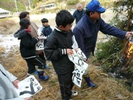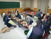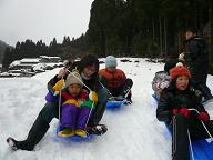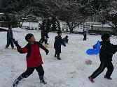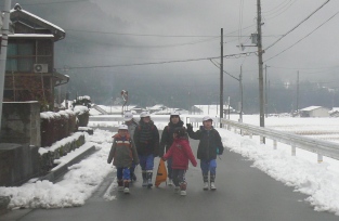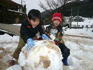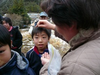 センターがある地域では、毎年1月14日が「とんど焼き」の日。 お昼ごはんをたべていると「2時くらいから始めるから、おいでや~」 と地域の方からの電話。 とんどの火が高く舞い上がり始めると、学園生たちが実家で書いて持ってきていた書初めを投入。 「書初めが空高く舞い上がると書が上手くなる」という言い伝えから、皆一生懸命、高く舞いそうな位置に自分の書初めをくべてみていました。 お正月飾りが燃え尽きると、残った炭を、大人たちが子どもたちのおでこにすりつけました。 「今年一年風邪をひきませんように」 あれれ?いつのまにやら、こんな顔に・・・ こんな顔にも・・・ りんごのほっぺ。 全員真っ黒けの顔で、雪合戦をしながら、にぎやかにセンターまで帰りました。 帰り際、地域の方がとんどで焼いた鏡餅を下さいました。 この地域の風習に従って、翌朝、「小豆粥」にして皆でいただきました。