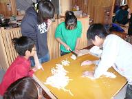 午前、今日の夕食のお鍋にいれるうどん作りをしました。