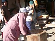 作畑地区では餅つき、こんにゃく作りを体験しました。