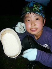 縄に使った藁は、もちろん、子どもたちの田んぼで、子どもたちが刈り取った藁です。